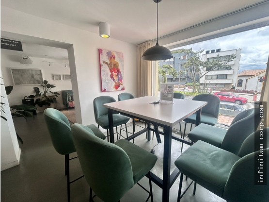 Grandiosa oficina en El Nogal l Área: 160 m2 (disponible hasta 1000 m2) l Amoblada l 40 puestos de trabajo (capacidad de hasta 250 puestos) l Zona de coworking l Salas de reuniones l Baterías de baño l Cafetería l Zona de salas abiertas l En caso de requerirse un número mayor o menor de puestos de trabajo, se puede contemplar l Alquiler incluye administración y servicios l Llave en mano l Gran Oportunidad!!