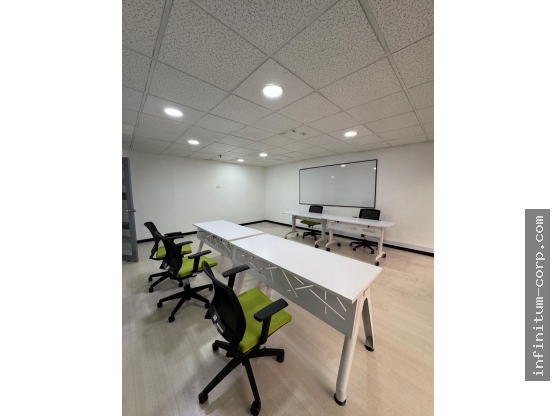 Maravillosa Oficina Iluminada y Amplia en Rosales l Piso Quinto l Amoblada l Área: 220.95 m2 l 6 Parqueaderos: Cuatro parqueaderos sencillos más uno doble (Ver fotos) l Vigilancia: 24/7 l Dos ascensores que llegan directamente a la oficina, la cual ocupa todo el piso 5 del edificio l Área de Cafetería l 3 baterías sanitarias dentro de la oficina y una exterior. l Recepción, sala de juntas, sala de espera, cuatro oficinas, y dos áreas grandes de puestos de trabajo y cuarto para aire acondicionado para servidores y equipos TIC